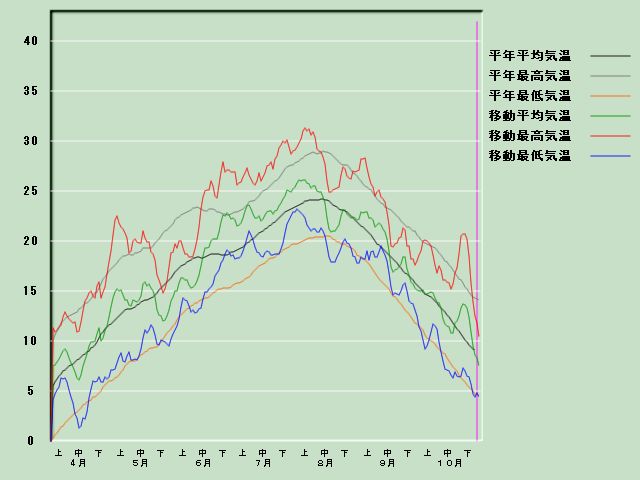 「北上」の気温経過図[11月1日現在] 降水量経過図 日照時間経過図