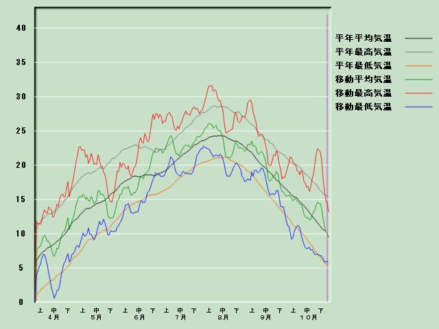 「古川」の気温経過図[11月1日現在] 降水量経過図 日照時間経過図