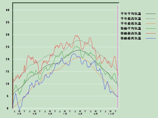 「鹿島台」の気温経過図[11月1日現在] 降水量経過図 日照時間経過図