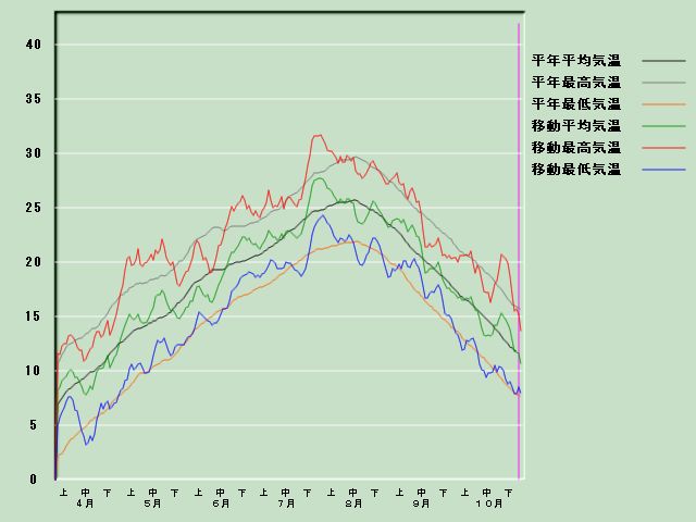 「酒田」の気温経過図[11月1日現在] 降水量経過図 日照時間経過図