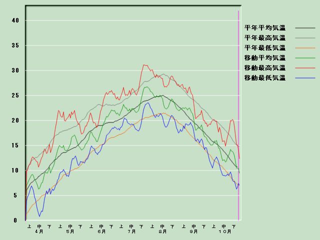 「狩川」の気温経過図[11月1日現在] 降水量経過図 日照時間経過図