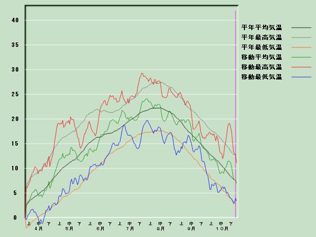 「肘折」の気温経過図[11月1日現在] 降水量経過図 日照時間経過図