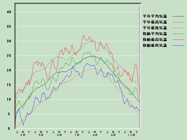 「米沢」の気温経過図[11月1日現在] 降水量経過図 日照時間経過図