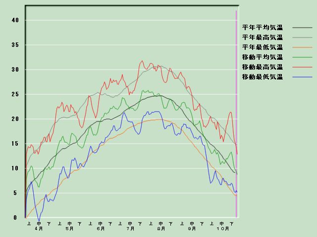 「喜多方」の気温経過図[11月1日現在] 降水量経過図 日照時間経過図