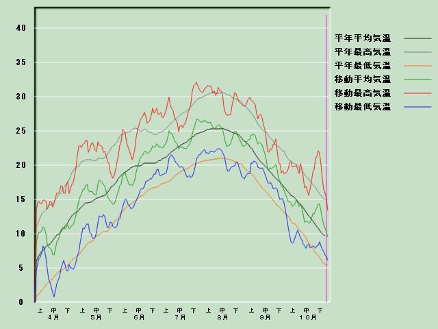 「若松」の気温経過図[11月1日現在] 降水量経過図 日照時間経過図