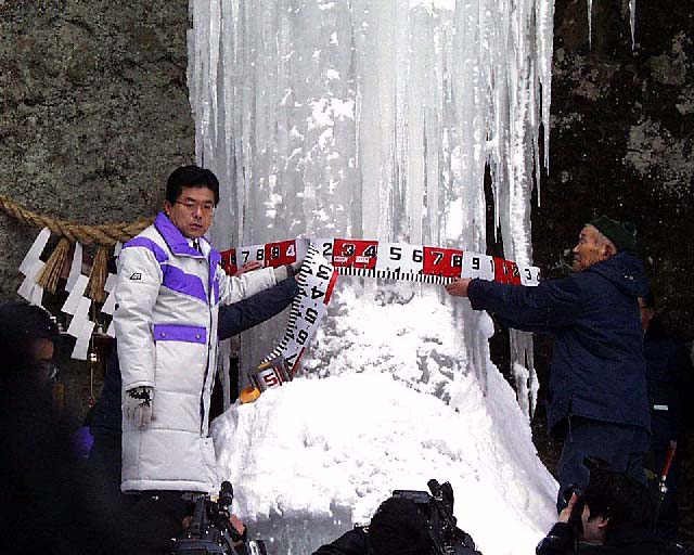 氷柱の高さは13mあり、太さは記録として残っているものでは、大豊作となった昭和53年が最高であった。過去の太さと作況は下表のとおり。