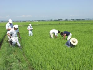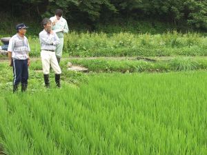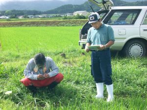 ・岩手県南部の水稲の生育状況を観察する。旺盛な生育量に驚かされる。