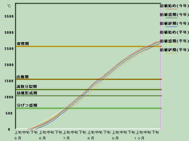 積算平均 気温 | 660度日 | 1050度日 | 1240度日 | 1550度日 | 2580度日 |