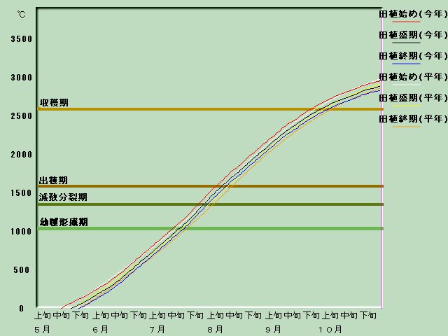 積算平均 気温 | 1040度日 | 1040度日 | 1360度日 | 1590度日 | 2600度日 |
