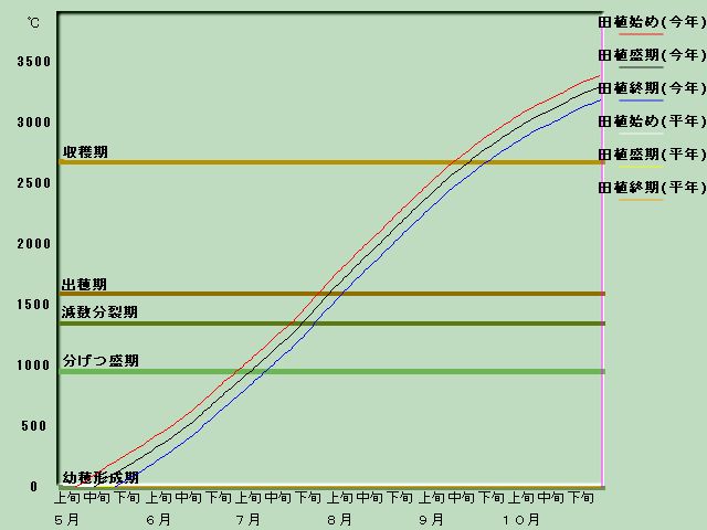 積算平均 気温 | 950度日 | 0度日 | 1350度日 | 1590度日 | 2680度日 |