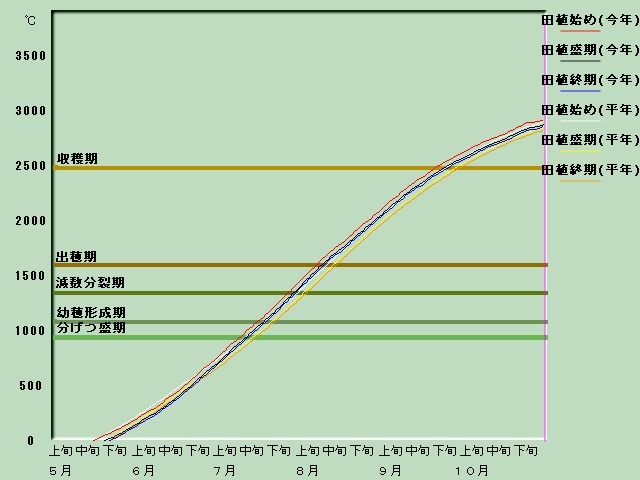 積算平均 気温 | 940度日 | 1090度日 | 1350度日 | 1600度日 | 2490度日 |