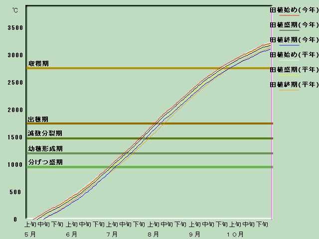 積算平均 気温 | 960度日 | 1210度日 | 1490度日 | 1750度日 | 2770度日 |