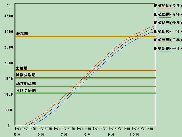 積算平均 気温 | 1040度日 | 1260度日 | 1530度日 | 1760度日 | 2850度日 |
