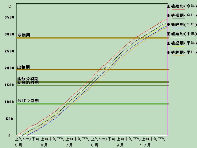 積算平均 気温 | 950度日 | 1500度日 | 1600度日 | 1950度日 | 2900度日 |