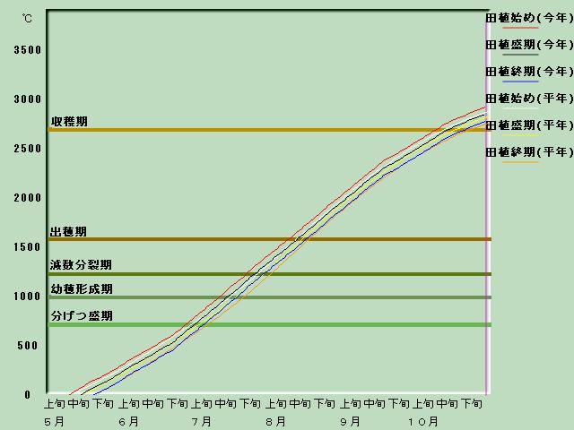 2001年積算気温による生育進度(蟹田 むつほまれ)