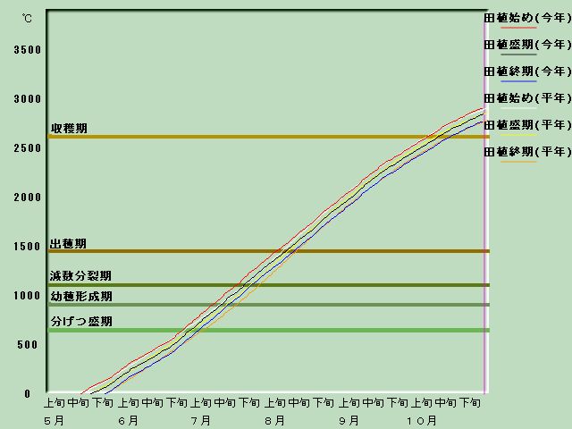 2001年積算気温による生育進度(八戸 むつほまれ)