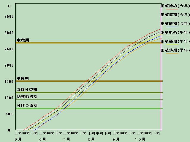 2001年積算気温による生育進度(三戸 むつほまれ)