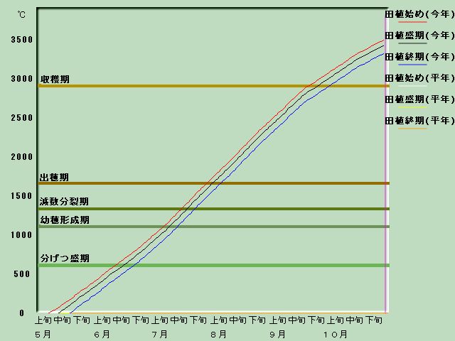 2001年積算気温による生育進度(秋田 あきたこまち)
