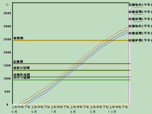 2001年積算気温による生育進度(宮古 たかねみのり)