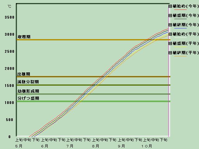 2001年積算気温による生育進度(尾花沢 どまんなか)