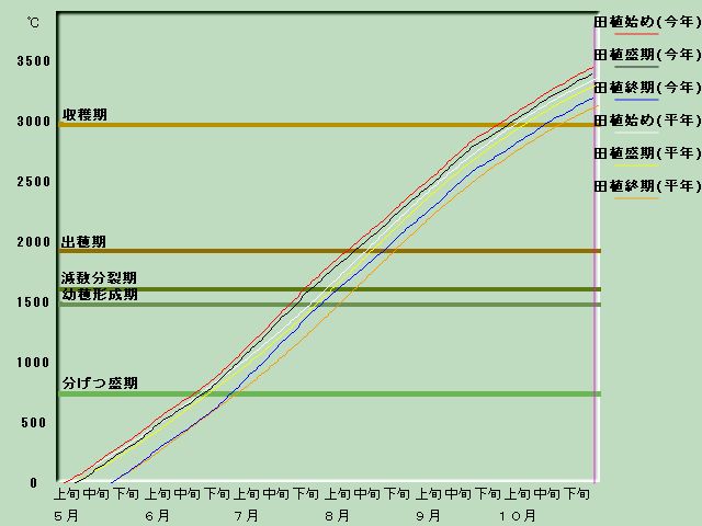 2001年積算気温による生育進度(浪江 コシヒカリ)