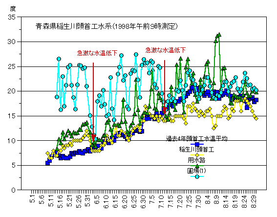 参照:早期警戒地点の水温経過,深水灌漑